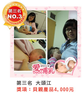 上傳您和寶寶愛的哺乳照,經過評選前三名可獲得PIGEON貝親產品最高8,000元喔!