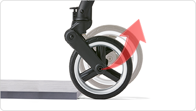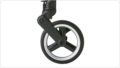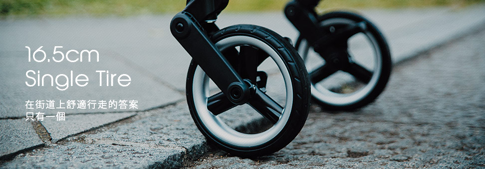 所有車輪皆俱備能減少寶寶晃動的避震裝置,不僅是上下晃動,也能吸收來自前方的力道,可避免因為穿越高低起伏的路面,所帶來的衝擊與搖晃。