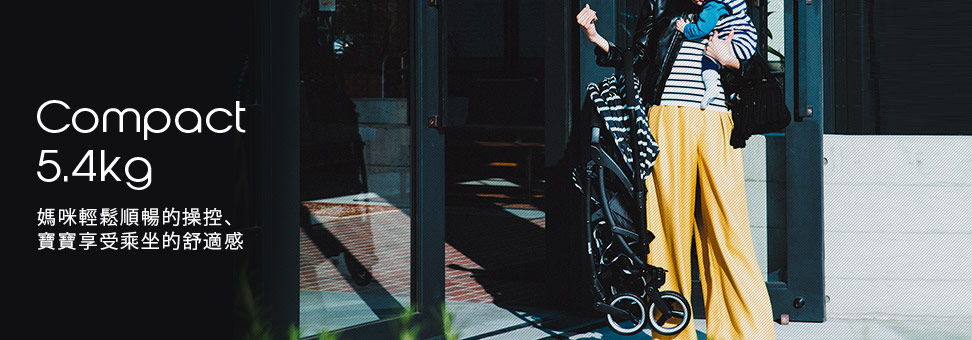 具備4輪自動切換的機能性推車,5.4kg輕量型設計可單手持握,媽咪也能單手抱著寶寶,另一手單鍵折疊推車,車輪不會碰撞到使用者的腳,是容易搬運操作的貼心設計。