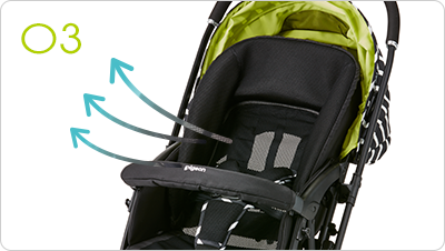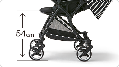 54cm挑高座椅的設計,讓寶寶遠離地面的炎熱、灰塵,使用推車的爸比、媽咪能與孩子更靠近,此高度讓照顧、抱孩子上下推車變得更方便。
