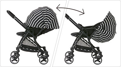 不論將推車把手調整為面對或是背面位置,靠近使用者位置的車輪(後輪)即可自動上鎖,而行進方向前側(前輪)的車輪也會自行切換成自由移動,因此您可順暢的調整雙向位置。