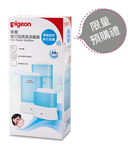 預購贈品 : 貝親輕巧型蒸氣消毒鍋乙台 P26272(市價:$1,800元)