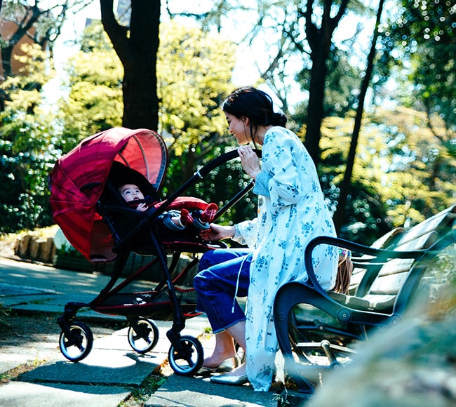 能減少地面高低差造成的晃動,輕推貝親推車即能在步道上輕盈行走。此外,由於單輪接觸地面的面積小,輪軸可輕快轉動,走在狹窄的地方也能快速因應。單輪推車在眾多碎石 路面的歐洲國家,也備受肯定。
