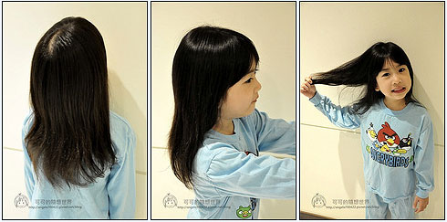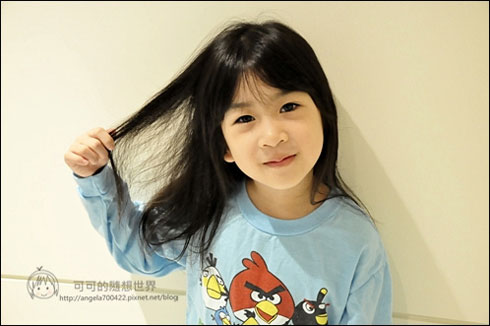 (↑硬要買憤怒鳥睡衣的可可很滿意自己滑順的頭髮~)