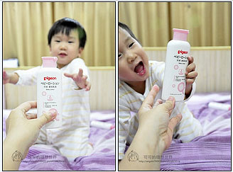 樂樂使用的是〝貝親嬰兒乳液〞,可可使用的是〝貝親滋潤型嬰兒乳液〞,一點點的花香,淡雅舒服。