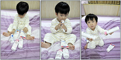 (↑光二瓶乳液~就可以讓樂樂玩上好久~)