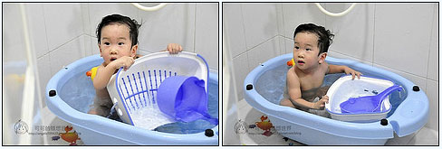 (說到洗澡,樂樂馬上爬進廁所裡,趁可樂媽忙著拍照,大肆的玩水)