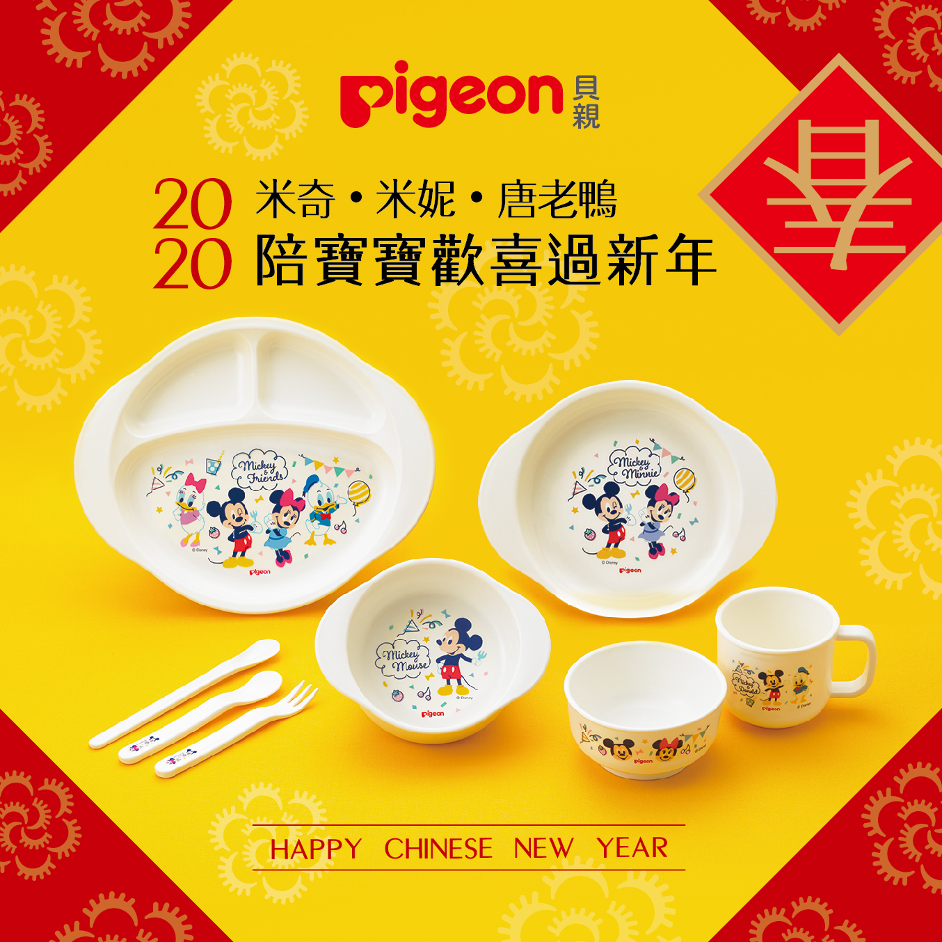 🍽🍲全家排排坐等開飯的時候🍲🍽拿出整套的迪士尼寶寶餐具,米奇、米妮、唐老鴨都陪著寶貝享用年夜飯,真是「鼠勾以」內😍 😍