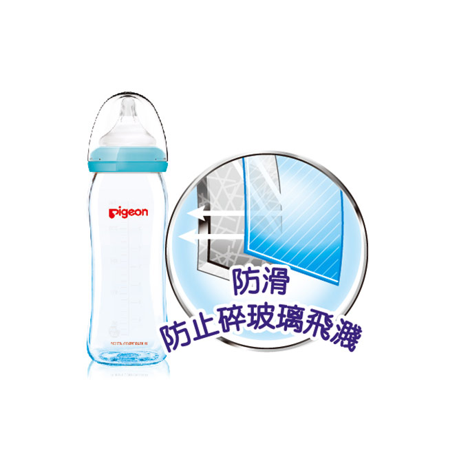 貝親矽膠護層寬口母乳實感玻璃奶瓶240ml/藍