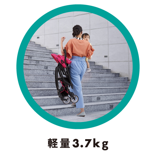 ★單手即可收車,即時抱寶寶也能輕鬆拿起推車。