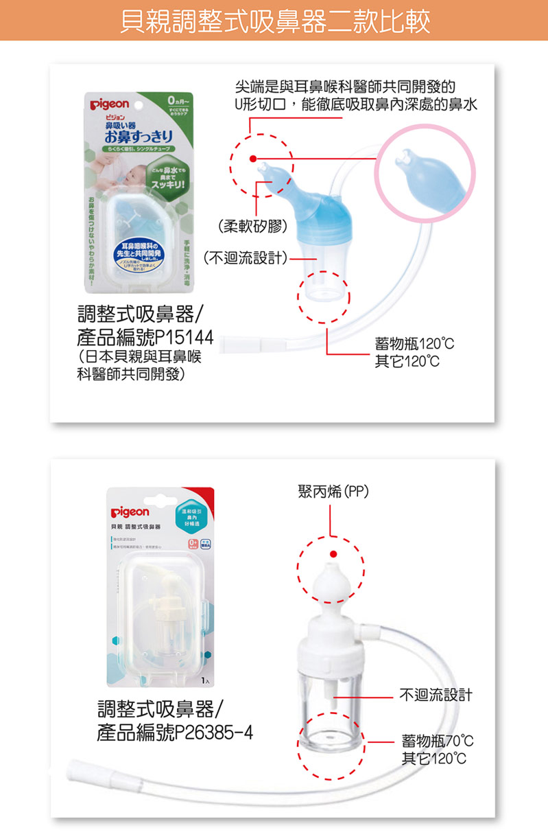 P15144調整式吸鼻器 是日本貝親與耳鼻喉科專業醫師共同開發研究,將傳統調整式吸鼻器改良後的產品。